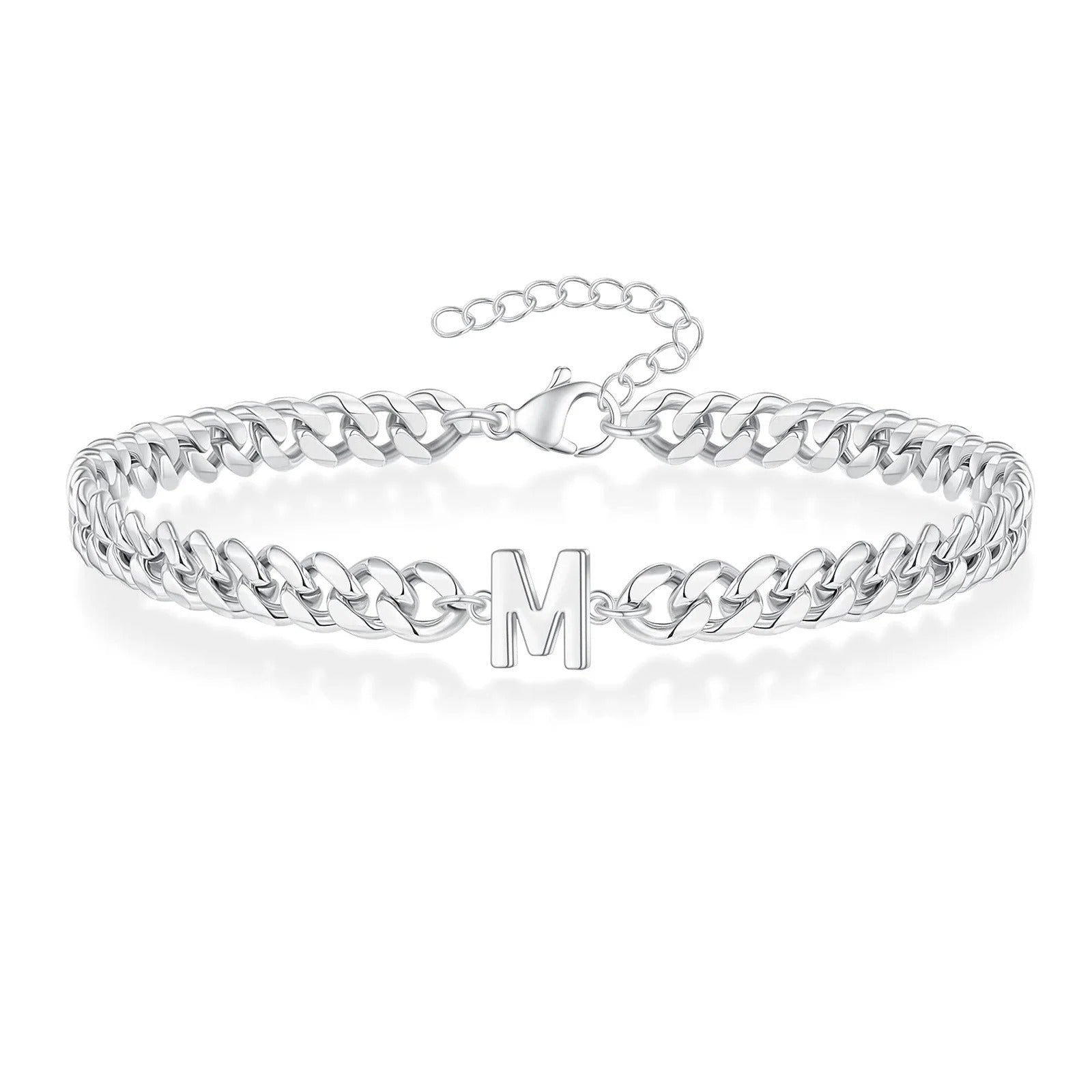 Ce bracelet élégant en acier inoxydable 316L de haute qualité argenté allie design moderne et signification personnelle. La chaîne à maillons distinctive offre un look intemporel, tandis que la lettre personnalisable rend ce bijou un compagnon très personnel.